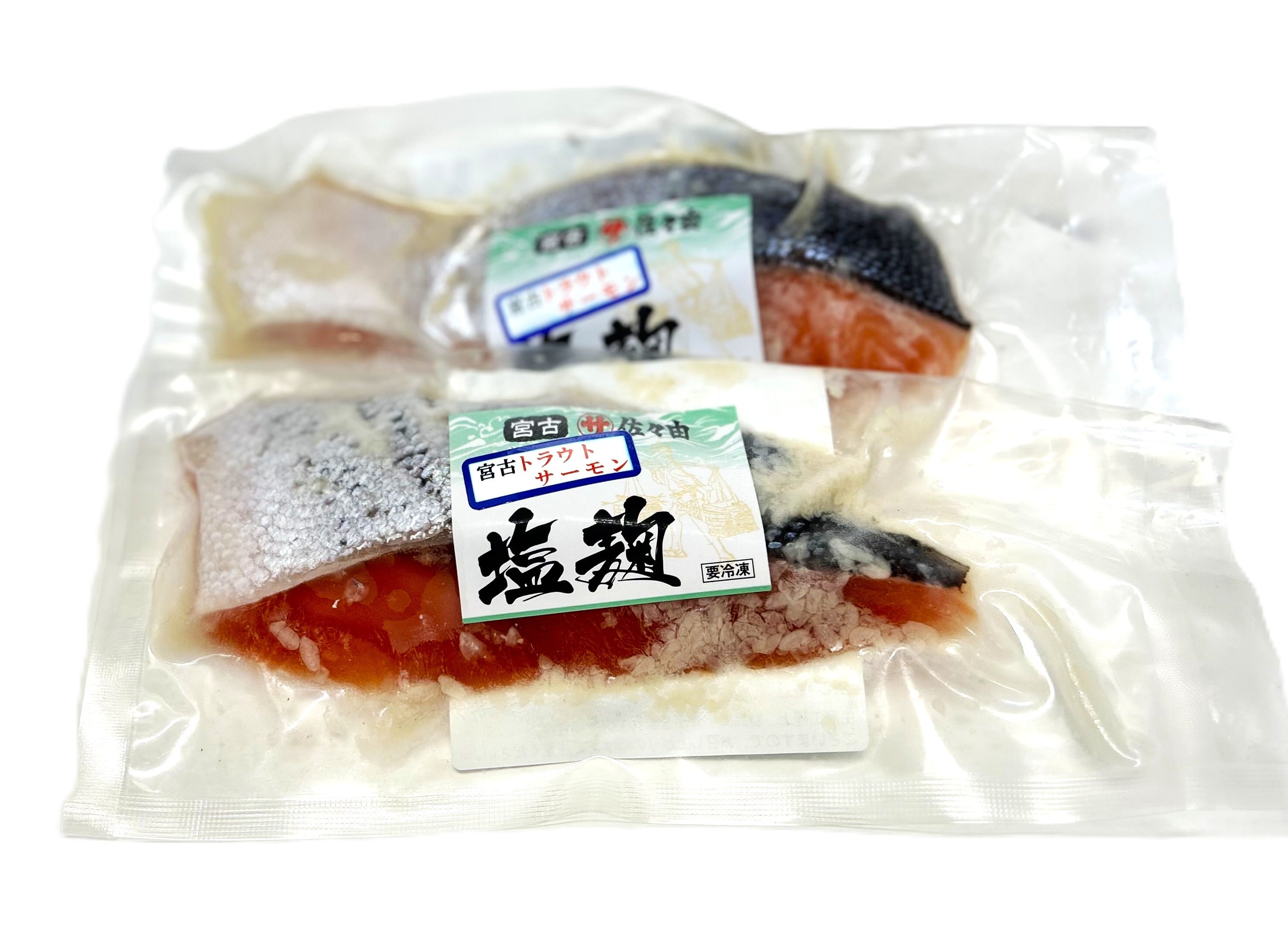 宮古トラウトサーモン西京漬(1切×2袋)、宮古トラウトサーモン粕漬(1切×2袋)